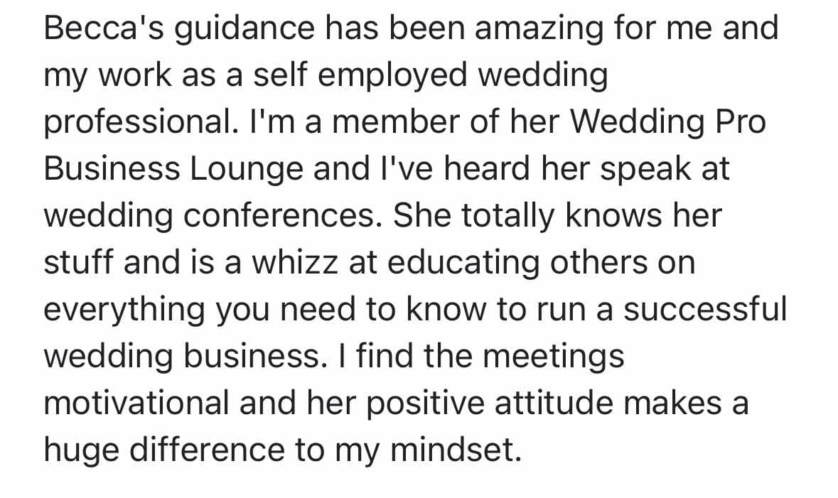 No more trying to figure it all out alone. No more scrolling through faceless forums. Just a curated circle of wedding industry peers, expert guidance, and the confidence to grow your wedding business with clarity and focus.